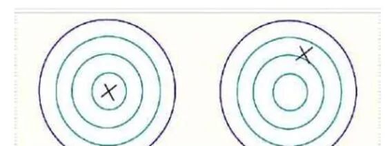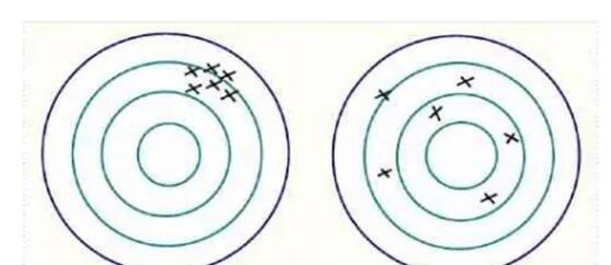 (如上图所示,左边的图精密度良好,但是准确度不符合要求;右边的图平均值的准确度符合要求,但是精密度较差)。